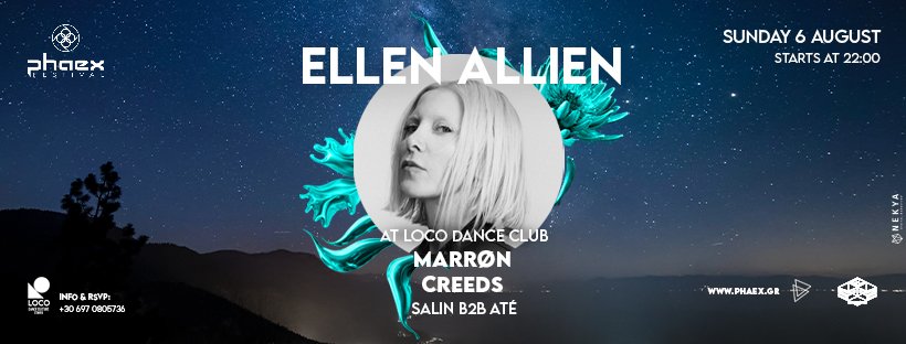 Phaex Festival 2023 with Ellen Allien, Marrøn, Creeds & more (Day 4 - Night) (Closing) Presale Ellen Allien, Marrøn, Creeds & more - 20€ Persons 1 2 3 4 5 6 7 8 9 10