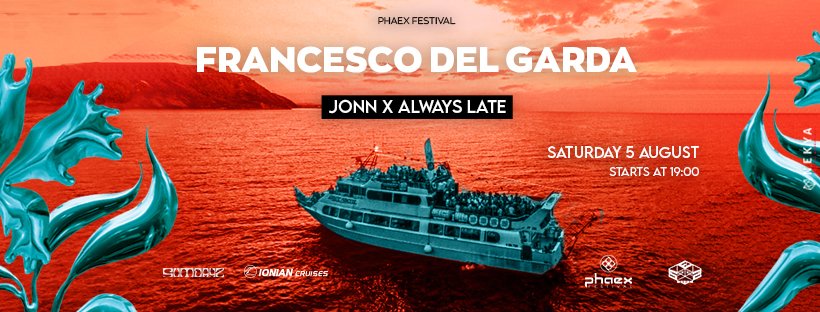 Phaex Festival 2023 Boat Party with Francesco Del Garda & more (Day 3 - Day) Presale Boat Party with Francesco Del Garda & more - 40€ Persons 1 2 3 4 5 6 7 8 9 10