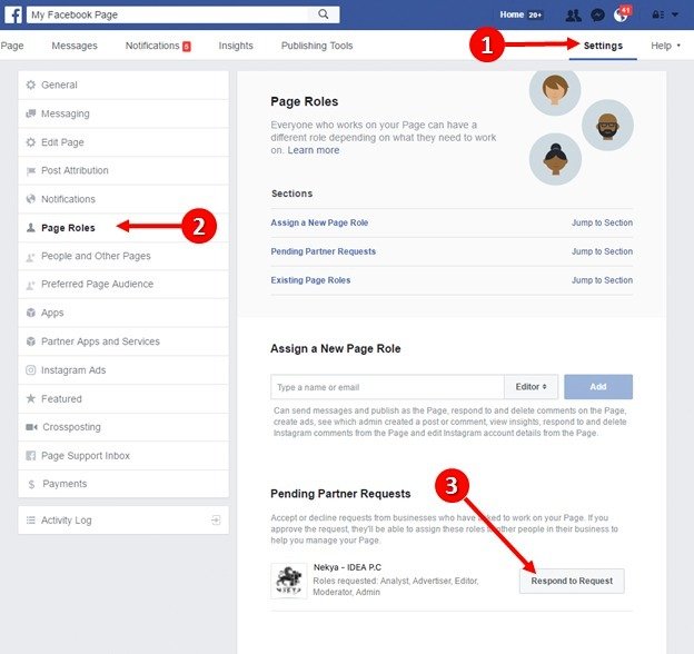 Facebook Access 1. Go to Settings -> Page Roles -> Respond to Request Also add this profile as Admin Find this profile Call Our Technical Team Back